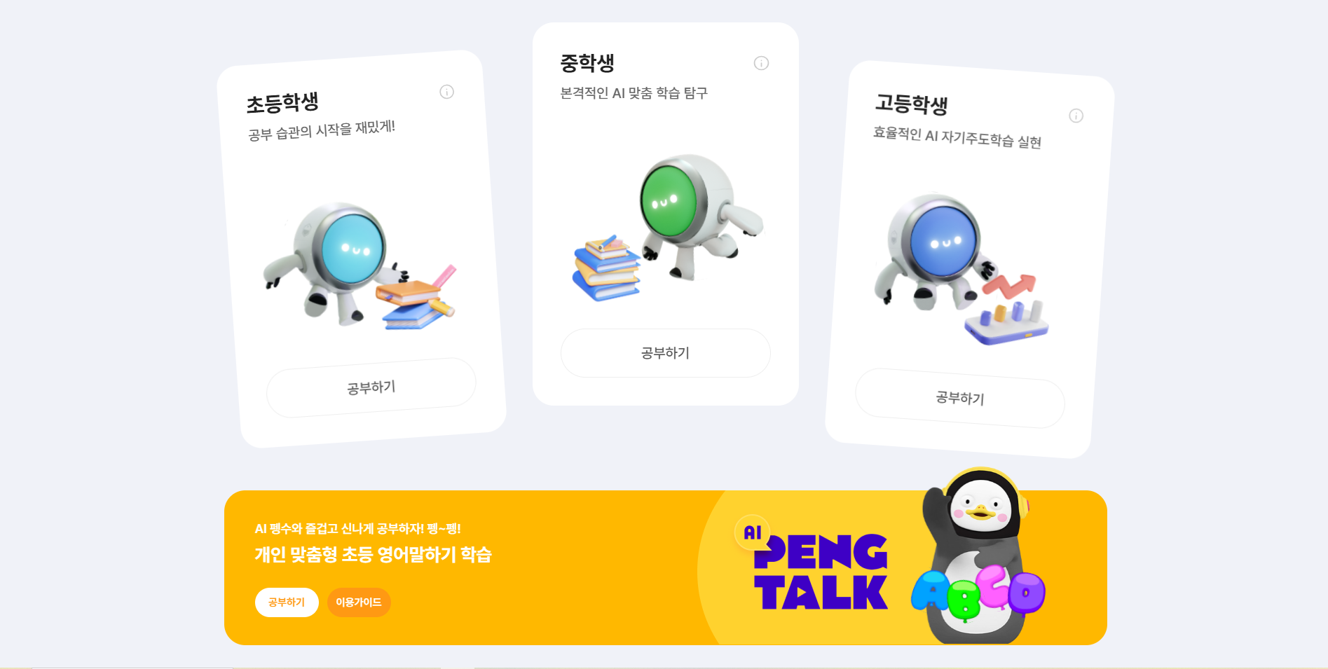 - 로그인 후 학년과 학습 수준을 설정하면 AI가 개인 맞춤 학습을 제공합니다.